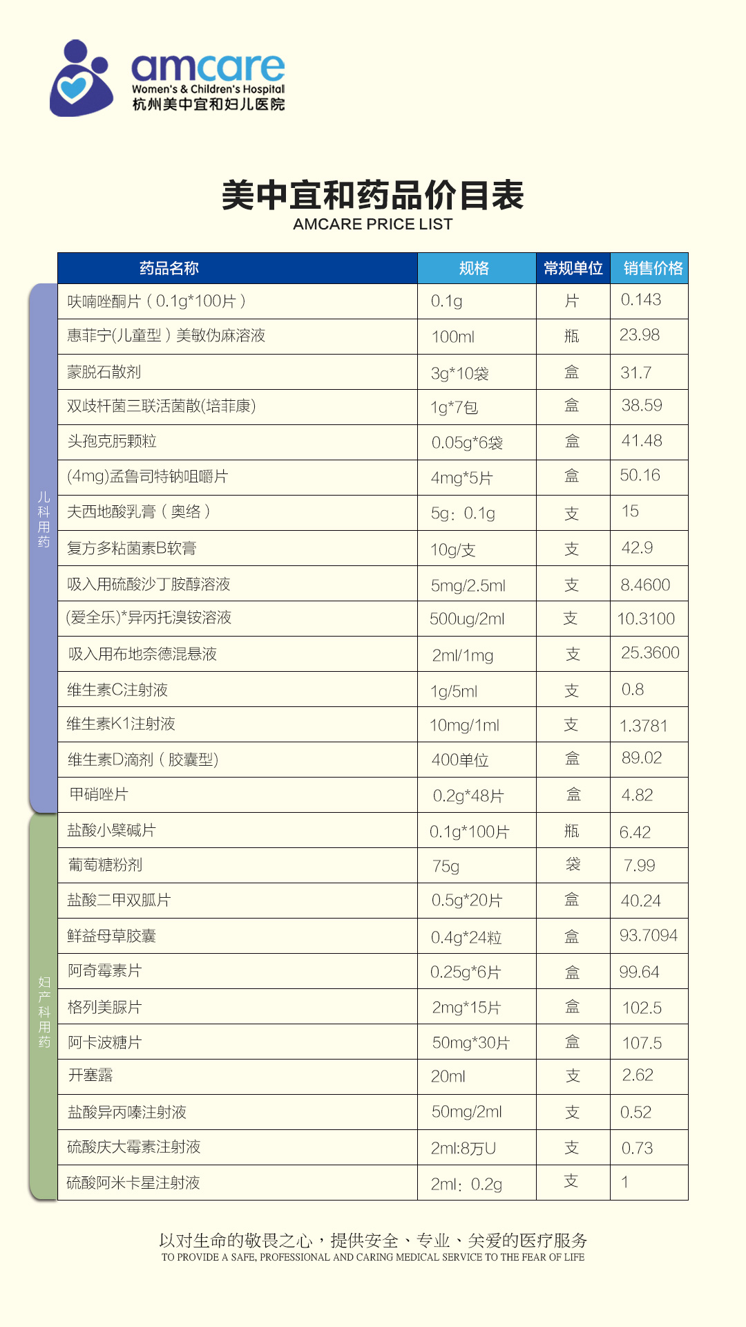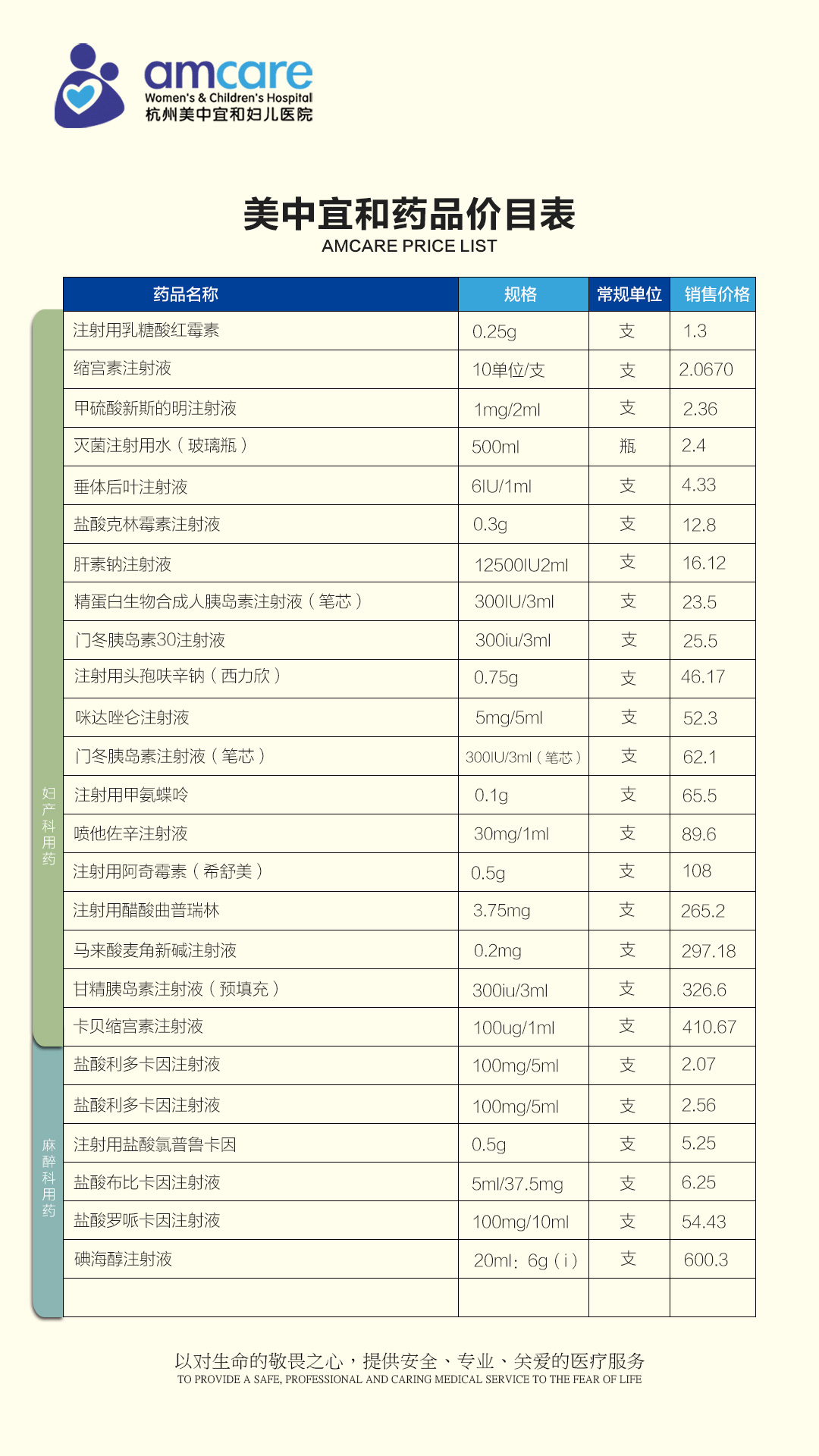 美中宜和药品价目表